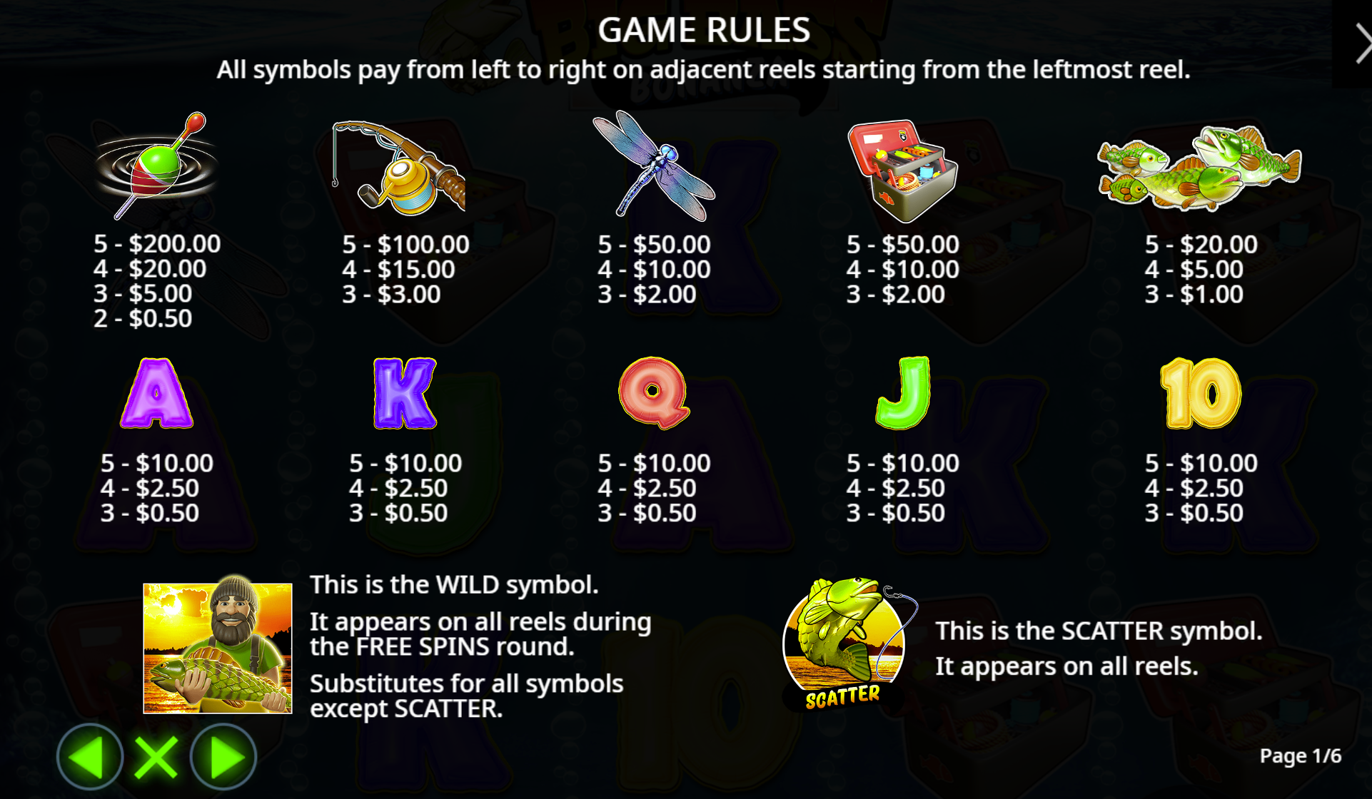 Get 3 or more scatter symbols (fishing floats) anywhere on the reels to trigger 10, 15, or 20 free spins.